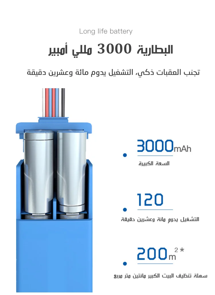 1-اشحن المكنسة بالكامل قبل الاستعمال الأول.
